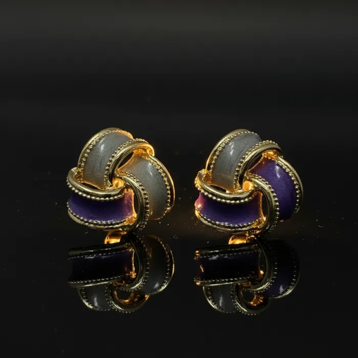 Chic Purple & Gray Enamel Knot Stud Earrings