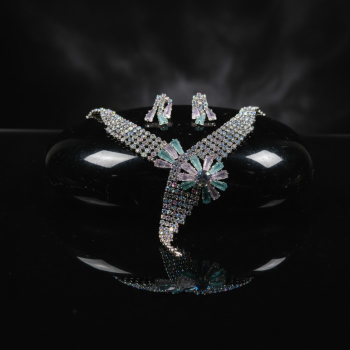 Sparkling Iridescent Stone Necklace & Earring Set for Women – Choker Style – Party Wear