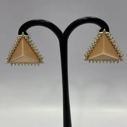 Step into the world of radiance with these timeless high-end earrings. Featuring a unique faceted stone finish and a polished golden border, this piece is a testament to refined taste and an upscale lifestyle.
