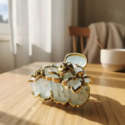 Make your wedding day hairstyle unforgettable. This opulent claw clip features delicate, semi-translucent petals and a central golden rose detail, reminiscent of fine jewelry. The secure, yet elegant design ensures your hair stays perfectly styled while radiating high-end bridal glamour. Ideal for brides, bridesmaids, or wedding guests.