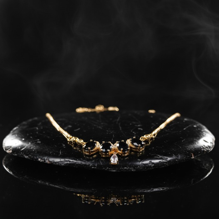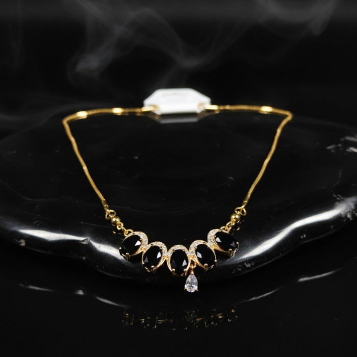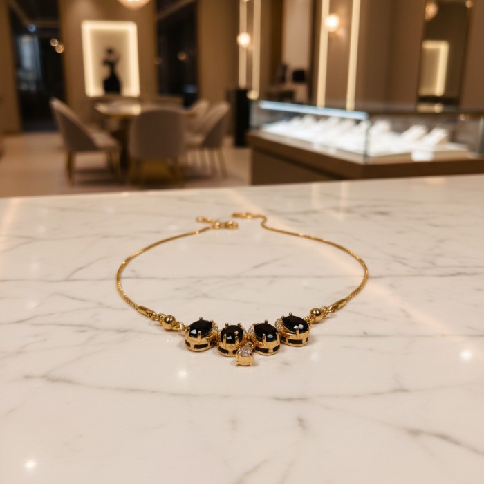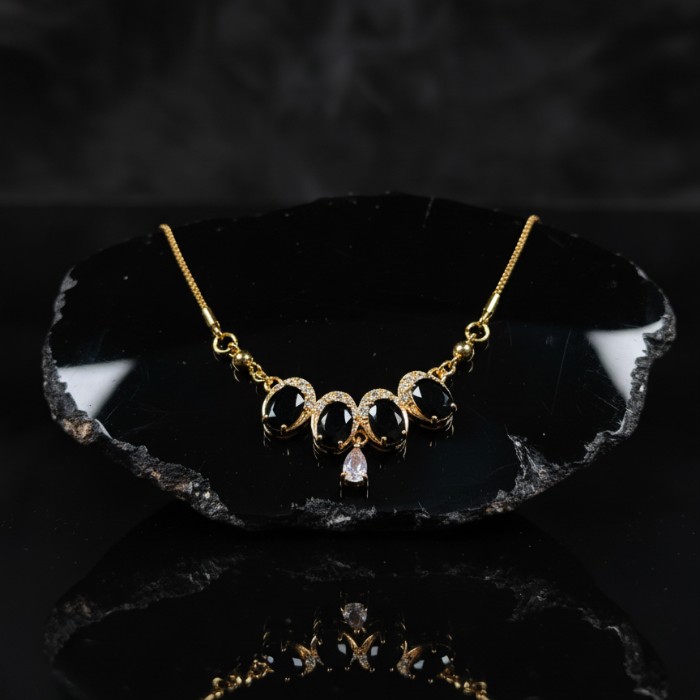 Elevate your style with this exquisite gold-plated necklace featuring striking black oval stones and sparkling cubic zirconia accents. Perfect for parties, special occasions, or adding a touch of glamour to your everyday look. Durable and fashionable jewelry for women.