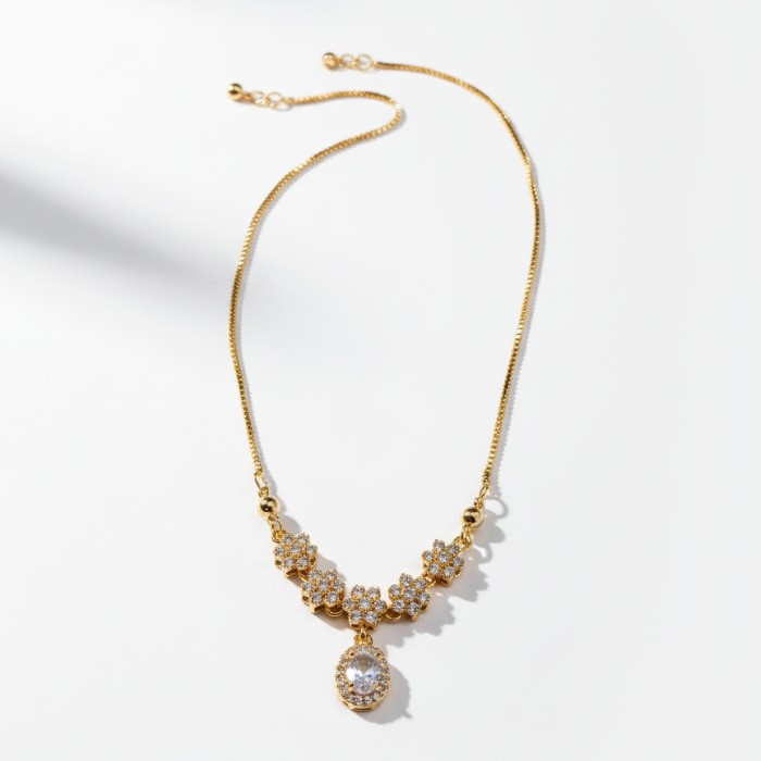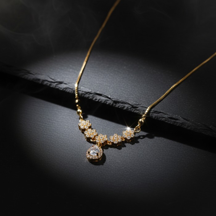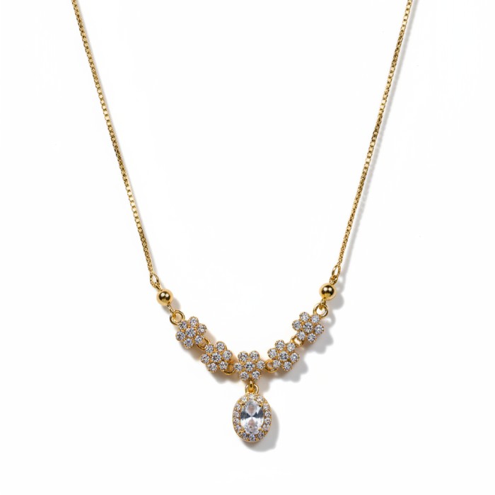 Elegant Gold Plated Flower Design Necklace with Sparkling Stone Pendant for Women