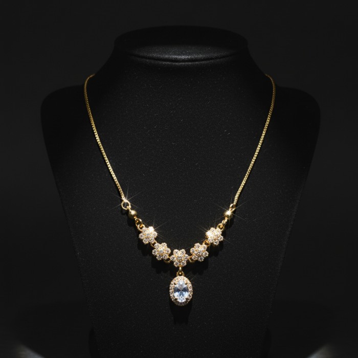 Be the first to review “Elegant Gold Plated Flower Design Necklace with Sparkling Stone Pendant for Women” Cancel reply