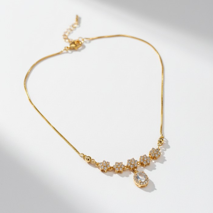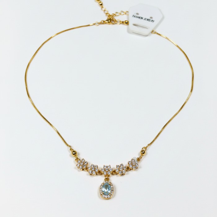 - Elevate your style with this exquisite gold-plated necklace featuring a delicate floral design adorned with sparkling stones.The centerpiece is a stunning clear stone pendant, adding a touch of glamour. Perfect for everyday wear or special occasions, this necklace makes a beautiful gift or a timeless addition to your jewelry collection. High-quality craftsmanship ensures lasting shine and comfort.