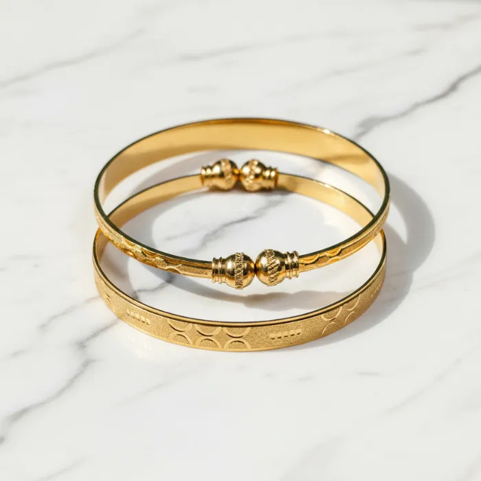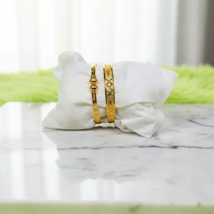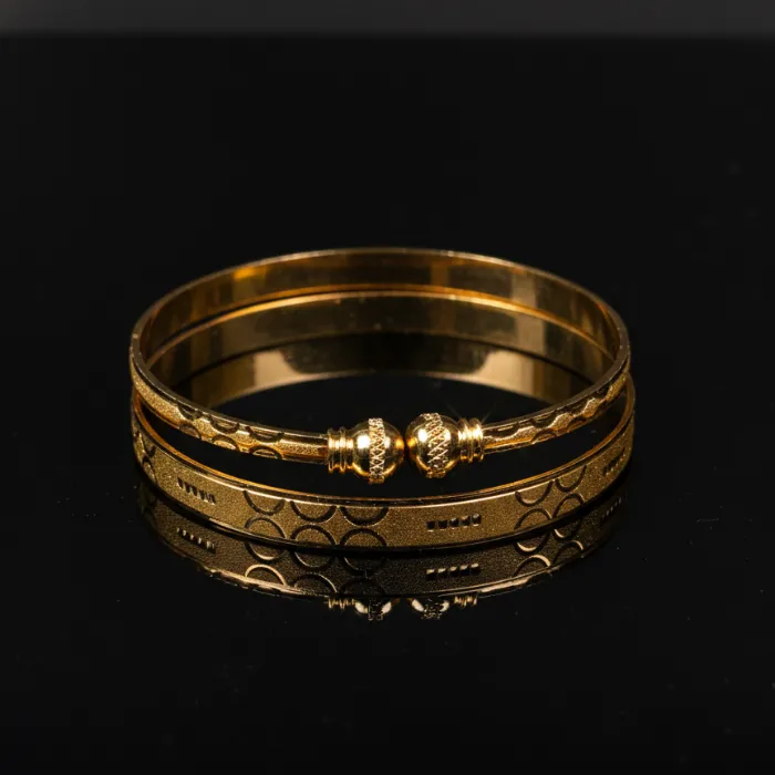 - Elevate your style with this exquisite set of gold-plated bangles, perfect for traditional occasions or adding a touch of elegance to your everyday look.