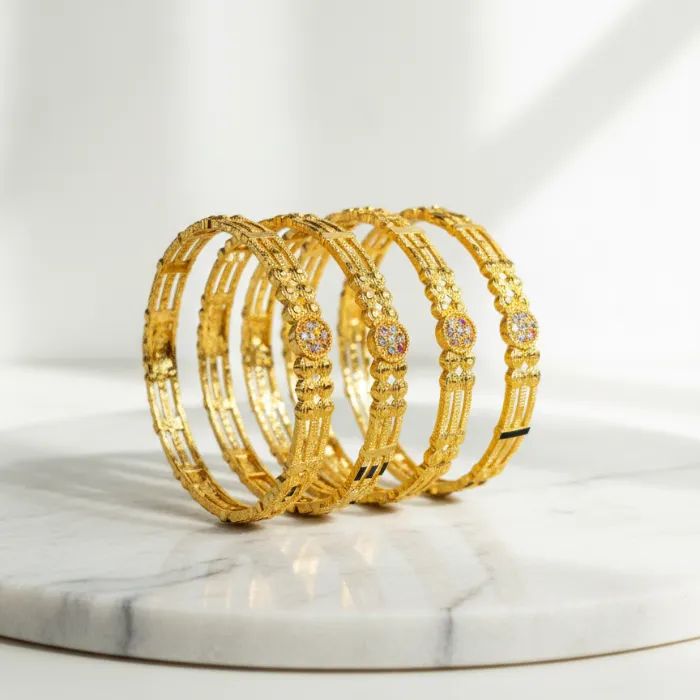 - Set Includes:A set of four matching bangles, perfect for creating a stacked look or wearing individually.