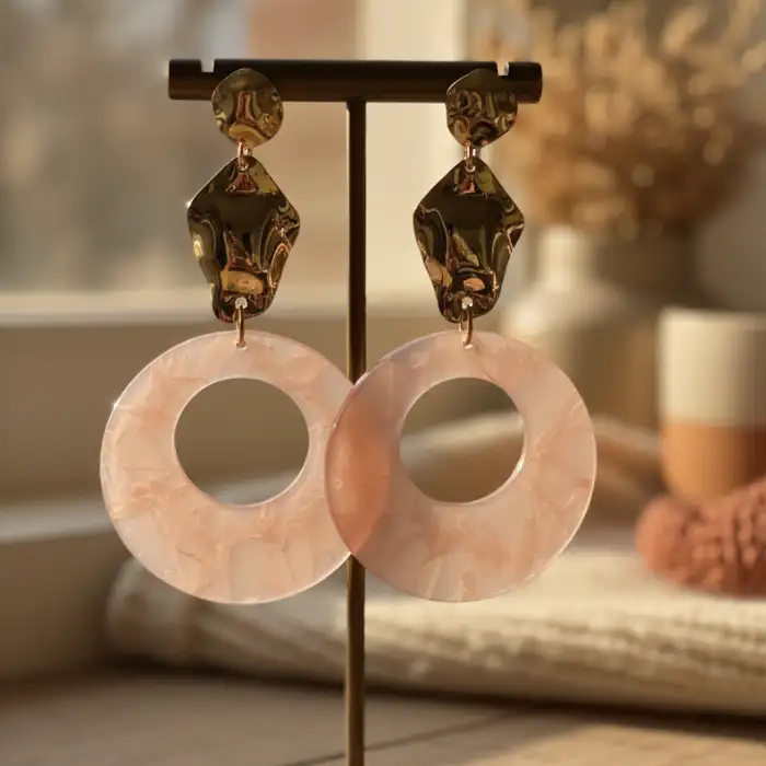 Western o boho style-er ekta darun combo holo ei earring-ti. Marble stone-er opor delicate texture abong pearl-er kaj khub-i expensive look dey.