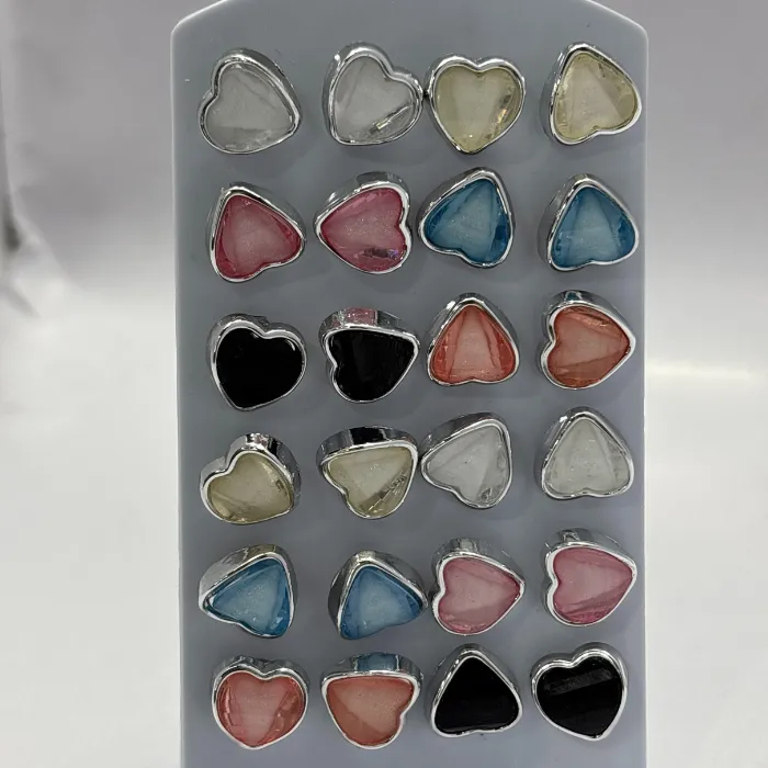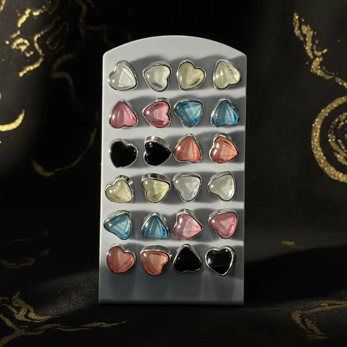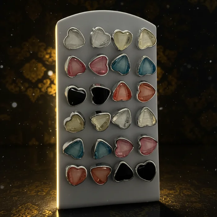Stay trendy with our Heart Series Value Pack! This set offers a variety of colors to suit your mood—from bold black to soft pastel pink. The compact earring card keeps your collection organized and easy to access. Made with skin-friendly materials and a secure backing, these studs are perfect for adding a pop of color to your wardrobe without breaking the bank.