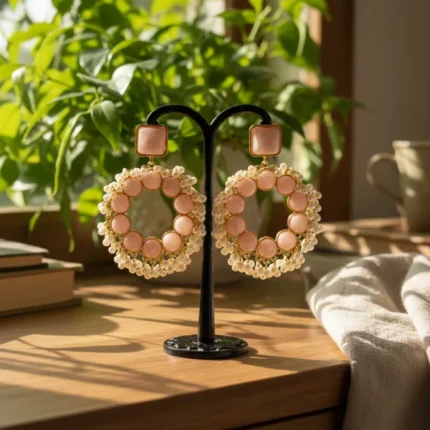 Morganite Crystal Quartz Gold Filled Stud Earrings for Women – Elegant & Stylish