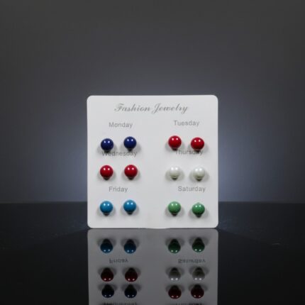 - Elevate your everyday style with this versatile 6-pair assorted stud earring set.Featuring classic round ball designs in a variety of colors, these earrings are perfect for daily wear, adding a touch of elegance and vibrancy to any outfit. Made for comfort and durability, this fashion jewelry set is an ideal accessory for women and girls, and a thoughtful gift for any occasion.