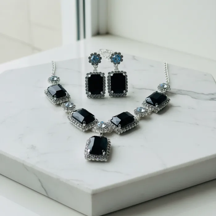 Elegant Black Stone Choker Necklace Set for Women – Party & Wedding Jewelry