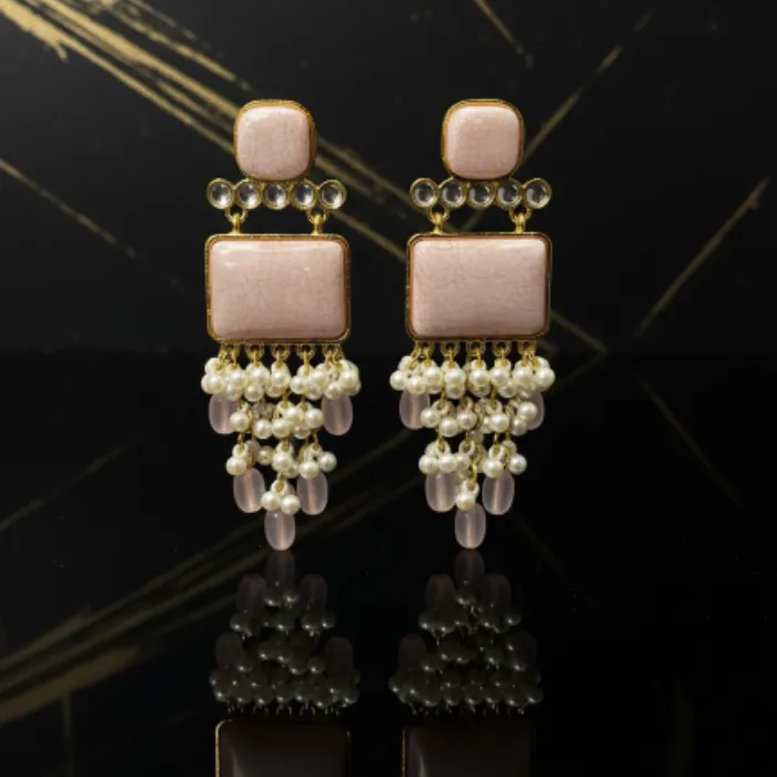 Morganite Crystal Quartz Gold Filled Stud Earrings for Women – Elegant & Stylish