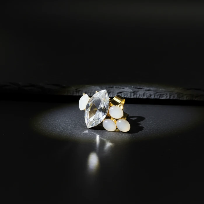 Embrace warm, vintage tones with this beautiful crystal cluster ring. The design features amber-hued, square-cut crystals arranged in a dazzling flower or starburst motif. The textured gold-tone setting adds an antique charm, while the adjustable open band ensures a comfortable fit for any finger size.