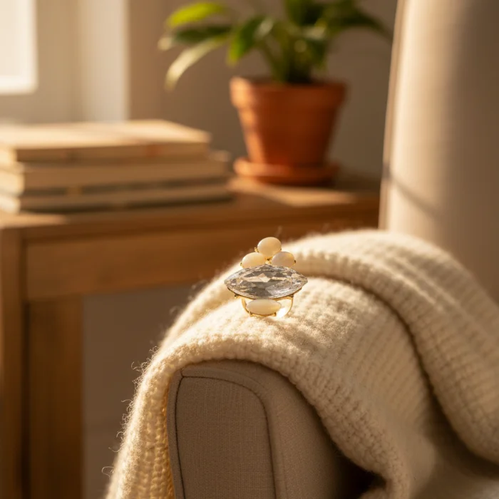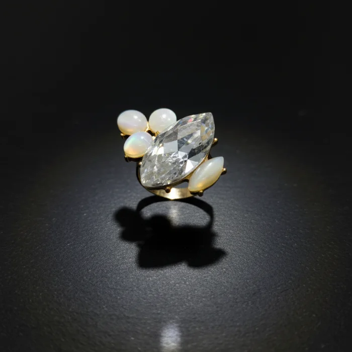 Golden Amber Crystal Starburst Ring
