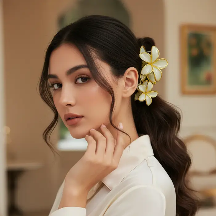 Crafted from premium, durable acetate, this single wide claw clip boasts a sophisticated, multi-toned striped pattern. Its strong, wide grip is ideal for securing thick hair securely and comfortably, making it a high-fashion, non-slip everyday essential.