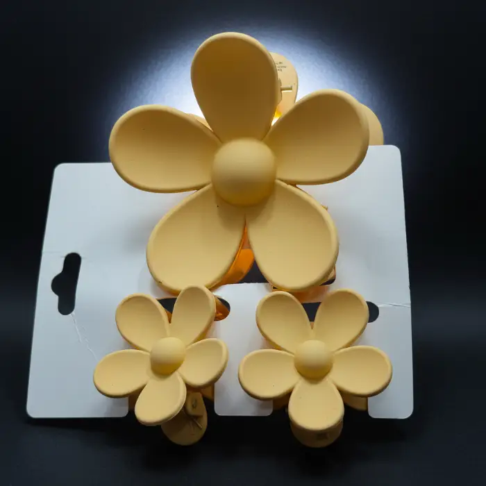 A versatile combo featuring one large and two smaller flower-shaped claw clips. Designed for strong hold and comfortable wear, this set is perfect for styling both full updos and half-up looks. An essential accessory for quick, chic hairstyles every day.