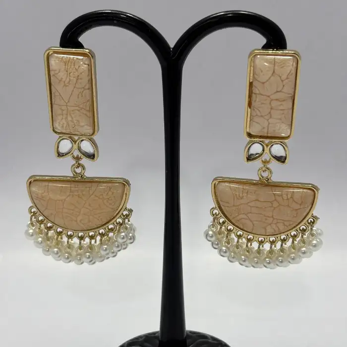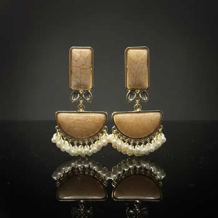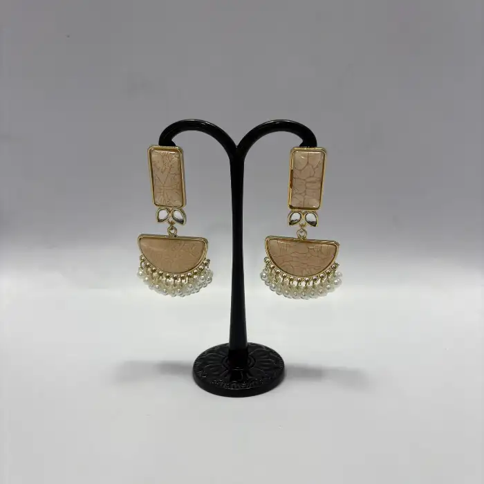 Nude Cracked Resin & Pearl Tassel Half Moon Earrings