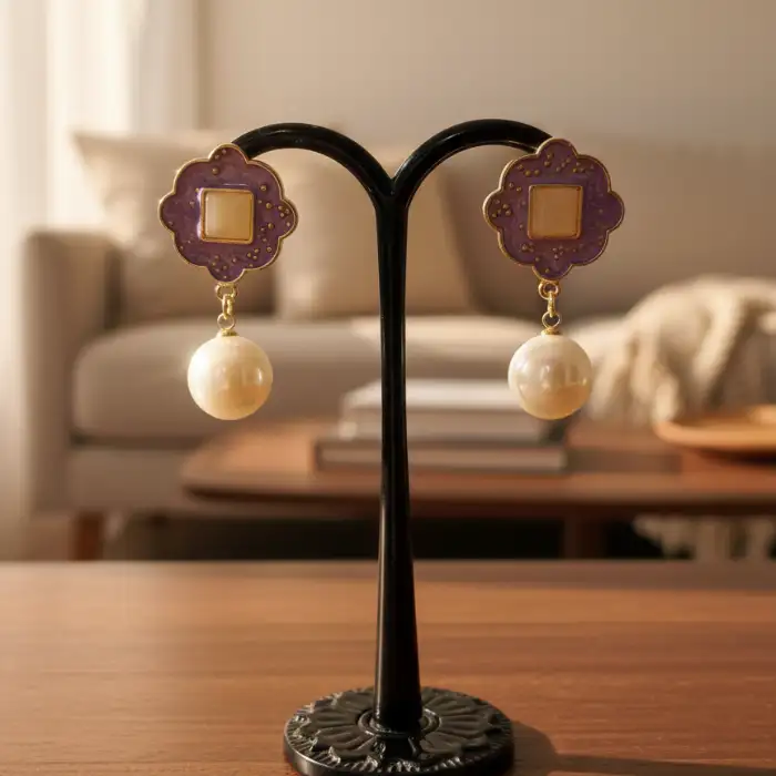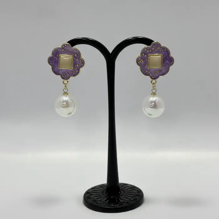 Capture the spotlight with a design that radiates pure opulence. These statement earrings showcase a magnificent marble-style texture framed in gold-tone borders, creating an expensive aesthetic for any gala.