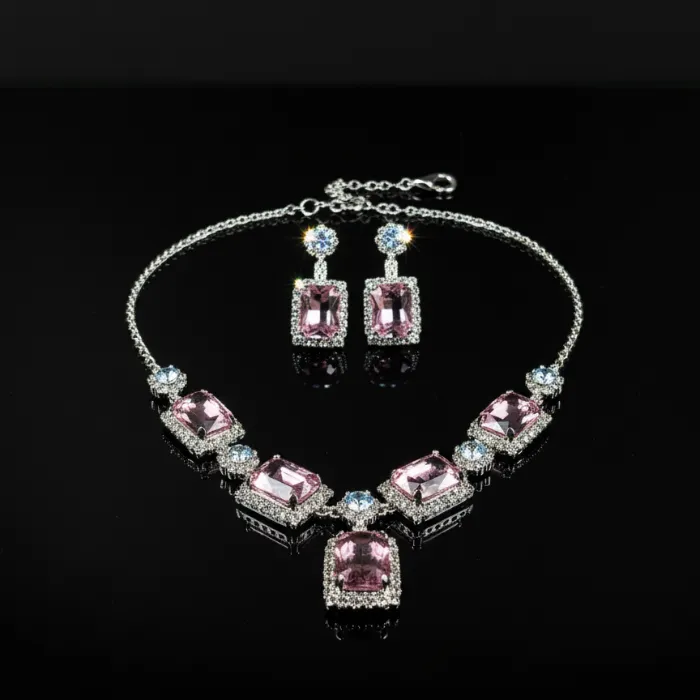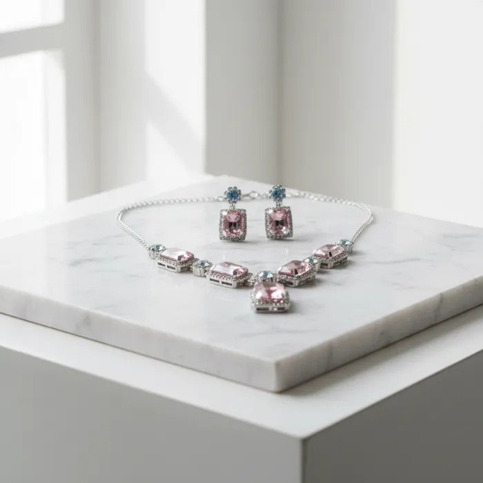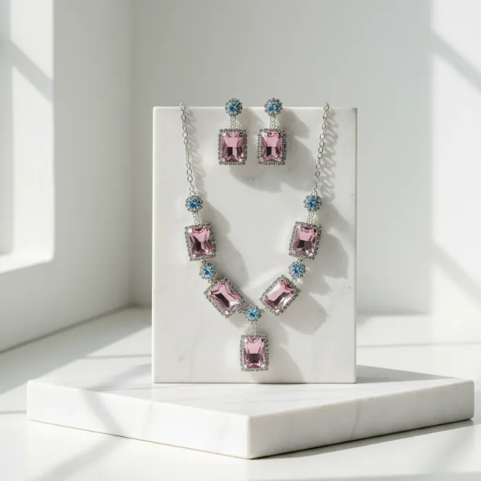 Pink Stone Statement Necklace | Elegant Silver Plated Choker