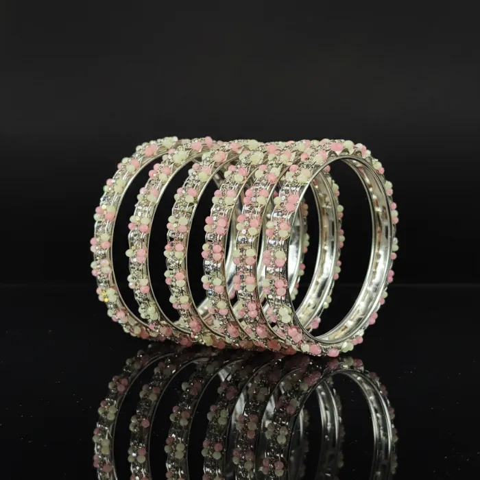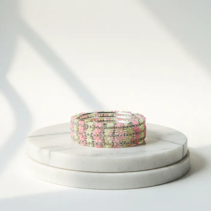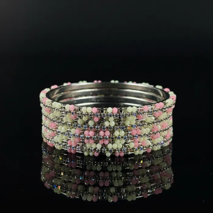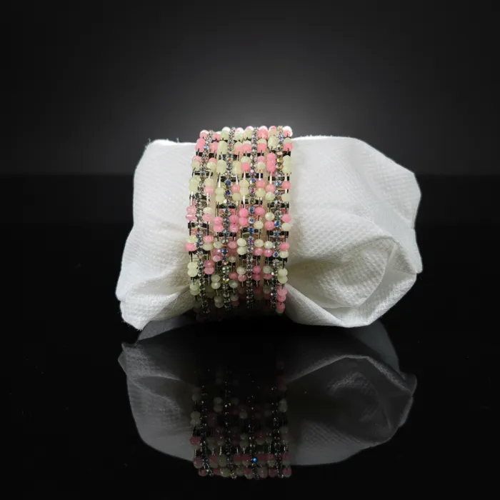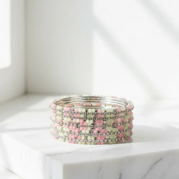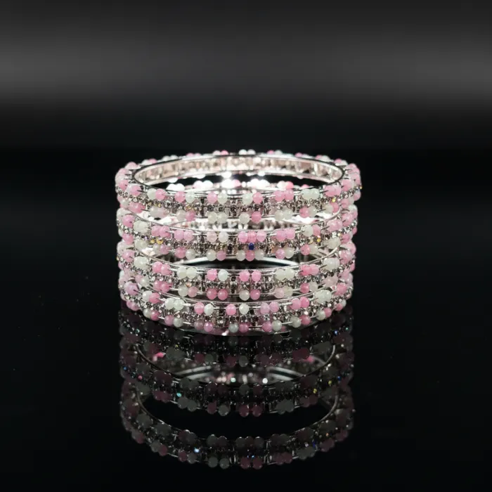 Pink & White Crystal Beaded Bangles Set for Women | Fashionable Alloy Bracelets