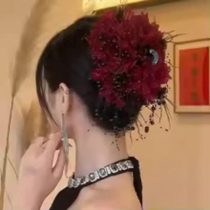 Add a touch of vintage elegance to your hairstyle with our Retro Bead Tassel Ribbon Hair Claw. This exquisite hair accessory is designed for the modern woman who loves a blend of luxury and classic style. Featuring a stunning handcrafted flower design adorned with shimmering beads and flowing tassels, this hair clip is more than just a fastener—it’s a statement piece.