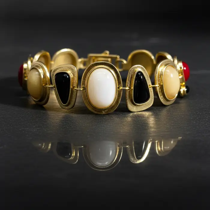 Transform your evening look with the aristocratic glow of this signature cuff. Featuring superior craftsmanship and high-polish metallic accents, this piece reflects a legacy of beauty and high-fashion status.