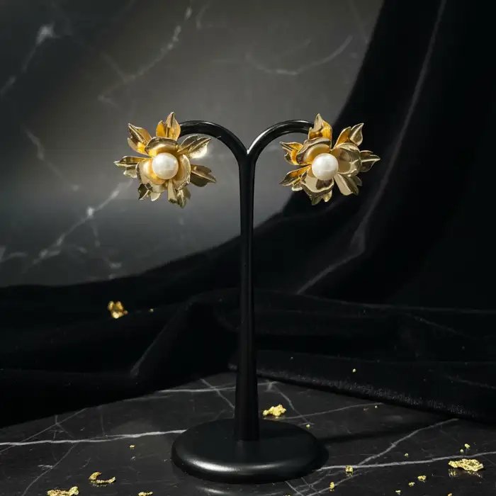 - Elevate your style with these stunning Black Onyx and Cubic Zirconia stud earrings. Featuring a central black onyx stone surrounded by sparkling cubic zirconia, set in a radiant gold-plated design. Perfect for parties, special occasions, or adding a touch of glamour to your everyday look. These elegant earrings are a must-have addition to any jewelry collection.