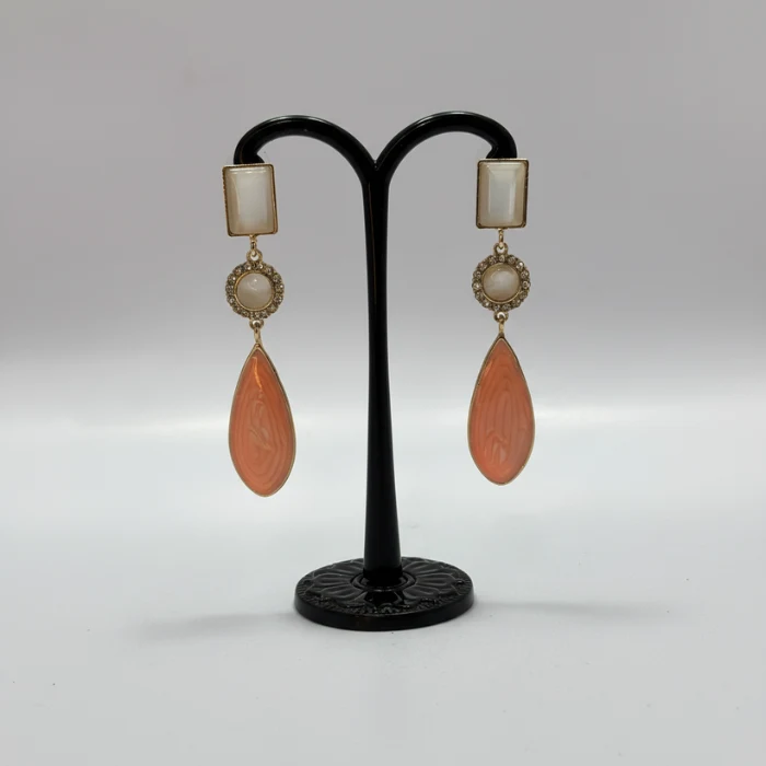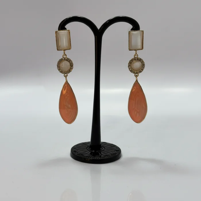 Splendid High-Gloss Stone Earrings with Floral Inlay