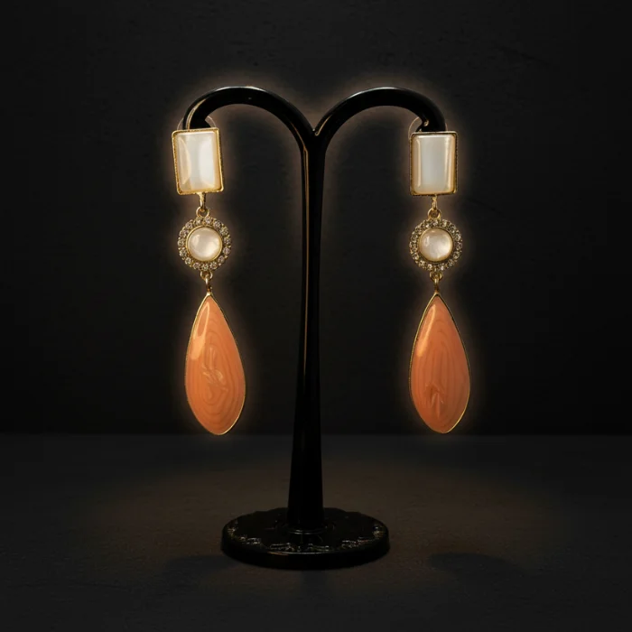 These splendid drops showcase a high-gloss finish that captures and reflects light brilliantly. Designed with a delicate stone-encrusted floral motif, they offer a sophisticated aesthetic that bridges the gap between classic charm and modern luxury.