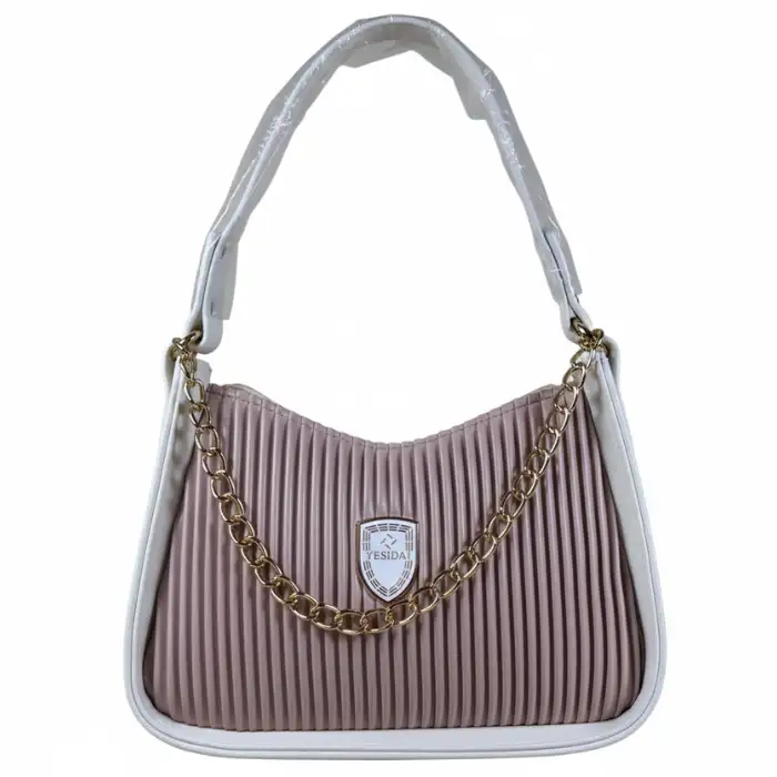 Fall in love with this sweet pink handbag, featuring a sophisticated pleated design and a stylish chain detail. It’s the perfect accessory to add a soft pop of color and elegance to your look, day or night!