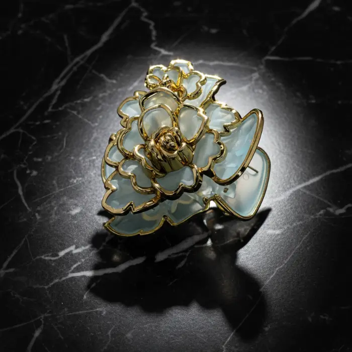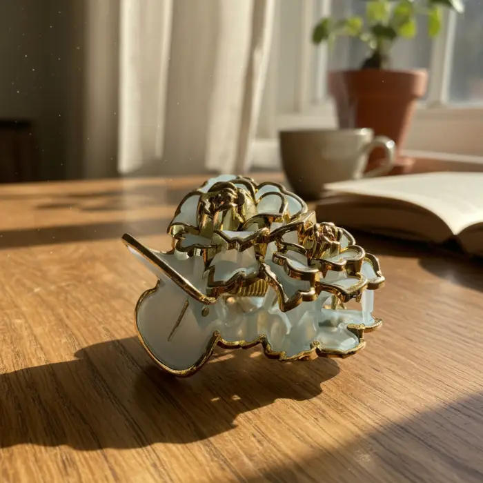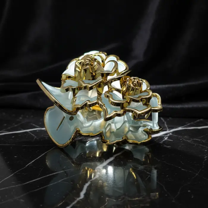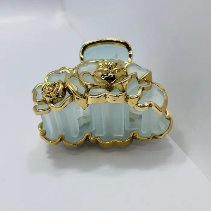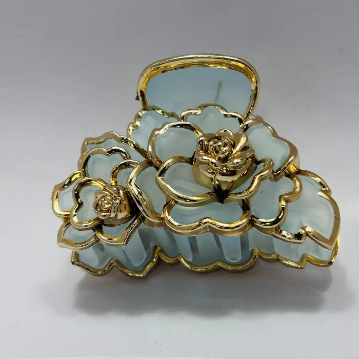 Make your wedding day hairstyle unforgettable. This opulent claw clip features delicate, semi-translucent petals and a central golden rose detail, reminiscent of fine jewelry. The secure, yet elegant design ensures your hair stays perfectly styled while radiating high-end bridal glamour. Ideal for brides, bridesmaids, or wedding guests.