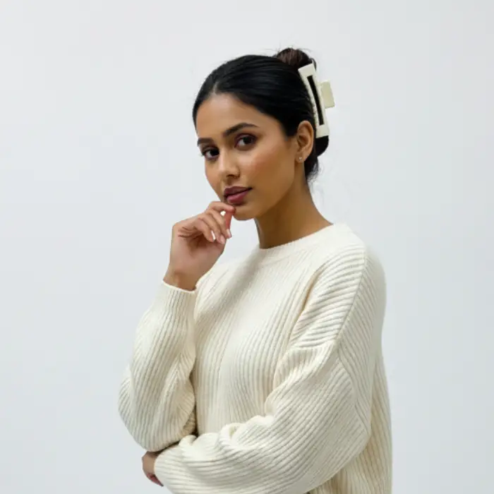 Sophistication defined. This hair clip is the ultimate accessory for the discerning individual, offering a refined, patterned aesthetic that complements formal and business attire with understated luxury.