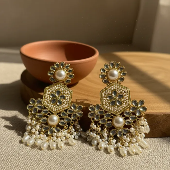 Timeless Luxury Premium Textured Stone and Pearl Drops