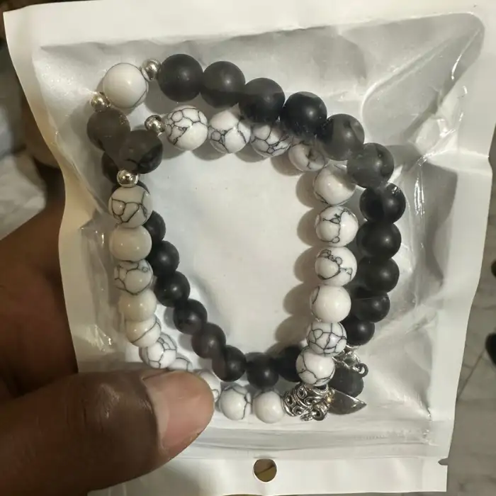 One order contains two bracelets in semi-precious natural stones (black onyx and white howlite).